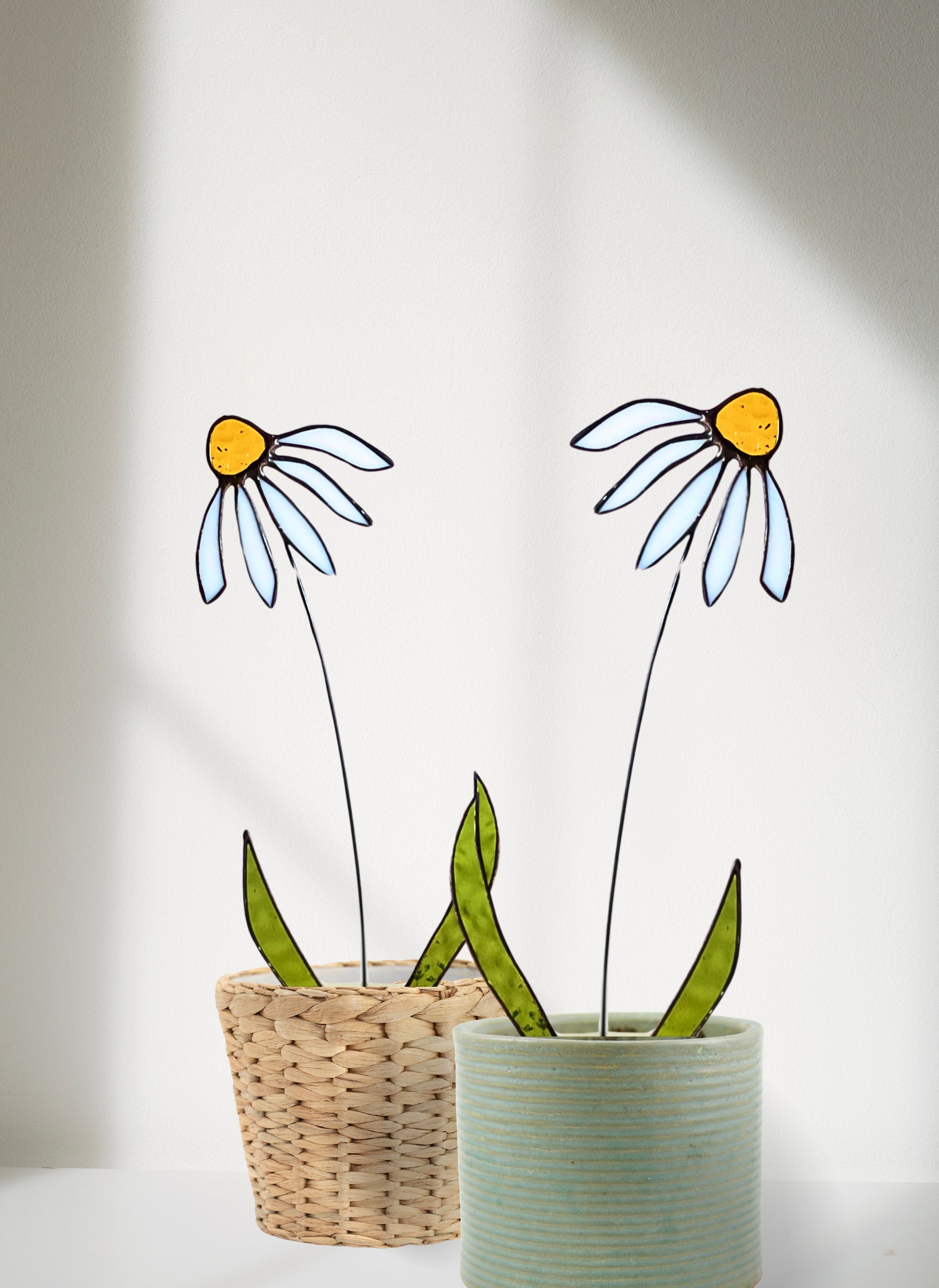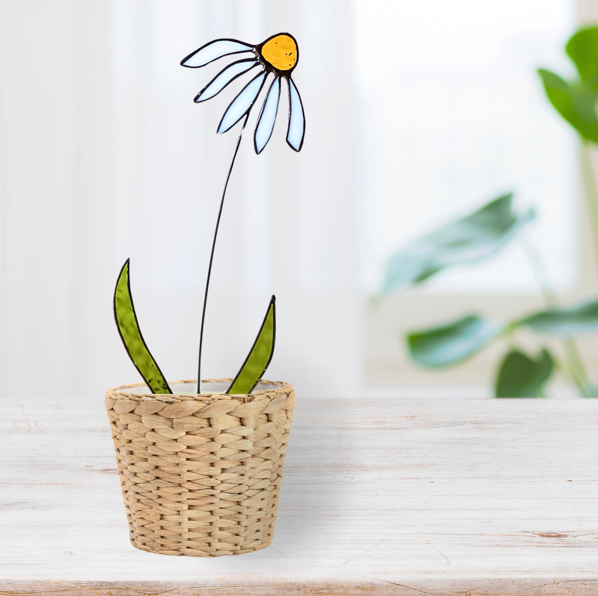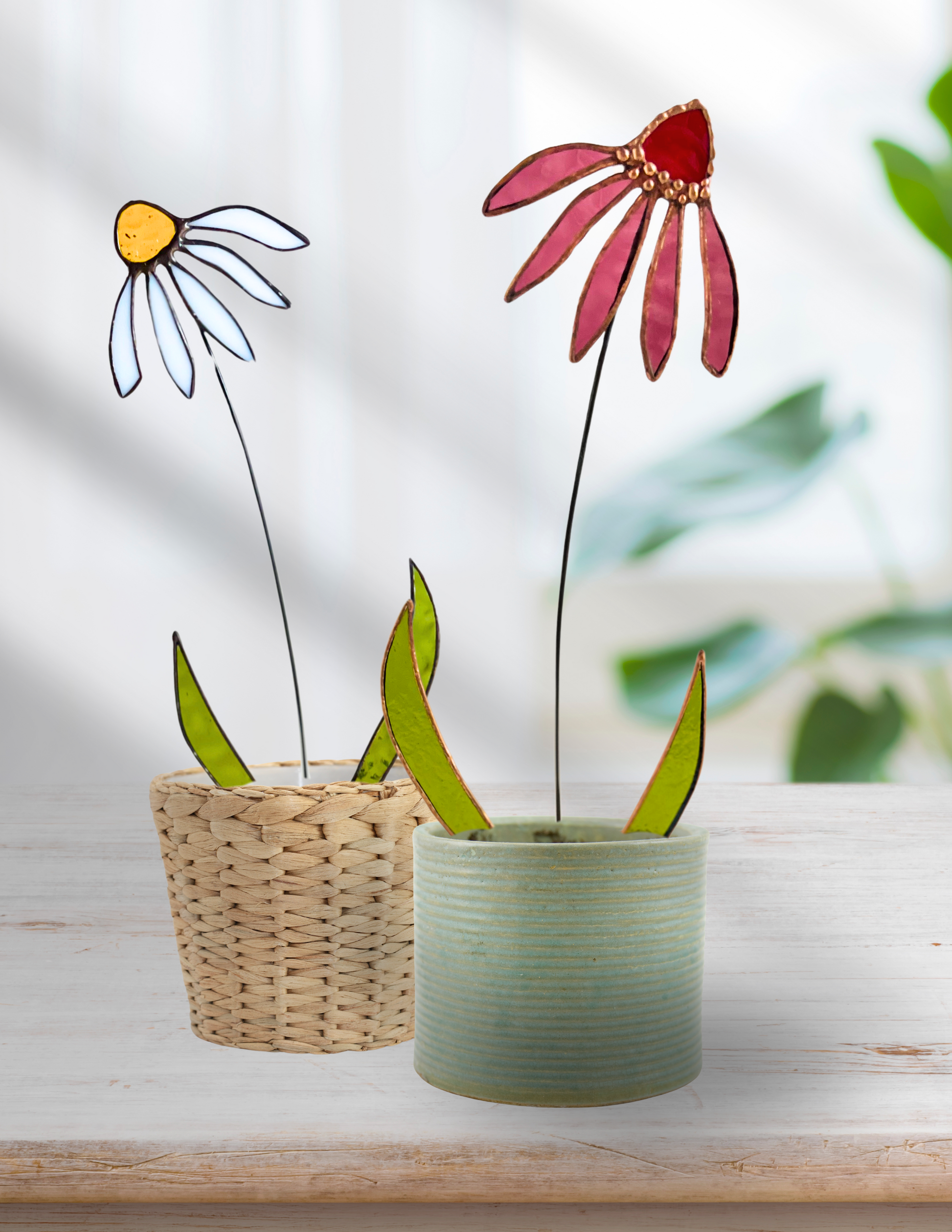 - Set in plant-inspired stakes to display in pots, vases, or as stained glass plants indoors (planter not included)